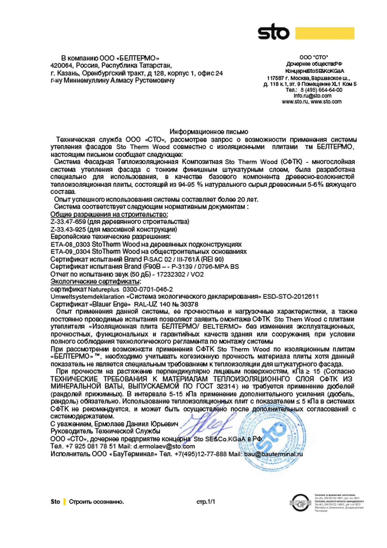 Подтвержденное сертификатами и действующими ГОСТ